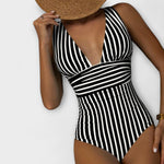 Otkrijte kupaći kostim Aurora prugasti za žene – savršena kombinacija stila i udobnosti za plažu i bazen! Dizajn koji ističe figuru naglašava vašu siluetu i pruža osjećaj samopouzdanja dok ga nosite. S materijalima visoke kvalitete, izdržljivim i dobrog oblika, imat ćete udoban kroj. Prugasti dizajn u modi je moderan i elegantan – pravi mamac!
