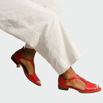 Istaknite svoj ljetni stil s ovim crvenim kožnim sandalama koje spajaju eleganciju i udobnost. Moderan dizajn s tankim remenom oko gležnja i otvorenim prednjim dijelom čini ih idealnim izborom za svakodnevne kombinacije, ali i za posebne prigode.