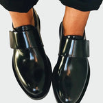 Podignite svoj stil s ovim elegantnim crnim kožnim cipelama. Njihov minimalistički dizajn sa širokom trakom stvara profinjen i moderan izgled, dok sjajna površina daje luksuzan dojam. Idealne su za svaku priliku, od svakodnevnih kombinacija do svečanijih izlazaka.