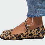 Istaknite svoj stil s ovim balerinkama s animal print uzorkom. Dizajn s leopard uzorkom i nježnom kopčom na remenu dodaje eleganciju i udobnost vašem svakodnevnom izgledu.