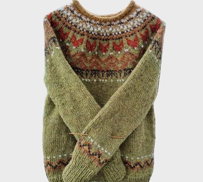 Pleteni Džemper s Vintage Žakard Uzorkom