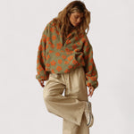 Cvjetni detalji inspirirani boho stilom dodaju elegantan i razigran dodir, dok blago oversized kroj osigurava ležeran i udoban izgled. Bilo da uživate u pauzi za kavu u gradu ili mirnoj večeri na kauču, ovaj fleece kombinira toplinu i osobnost.
