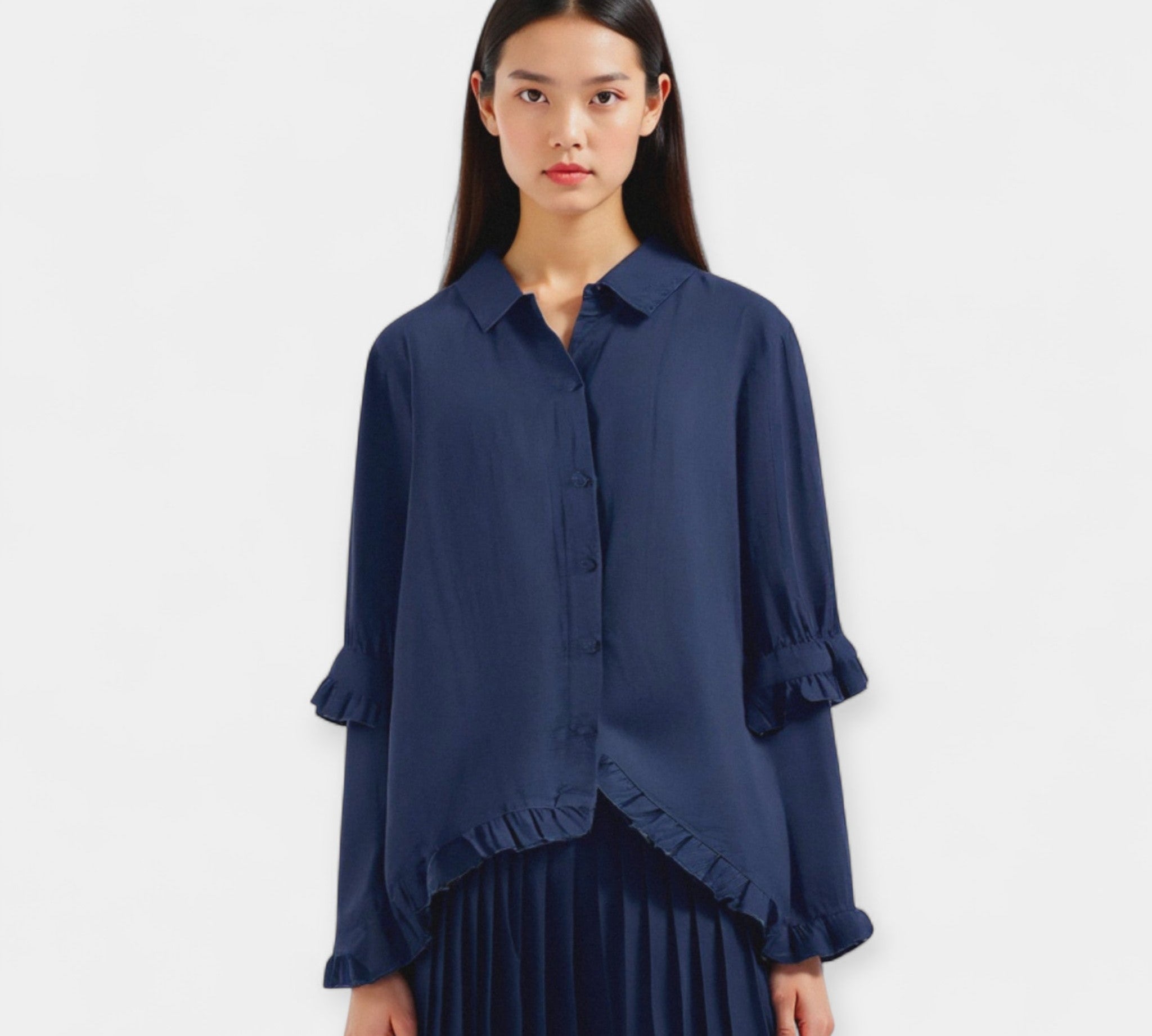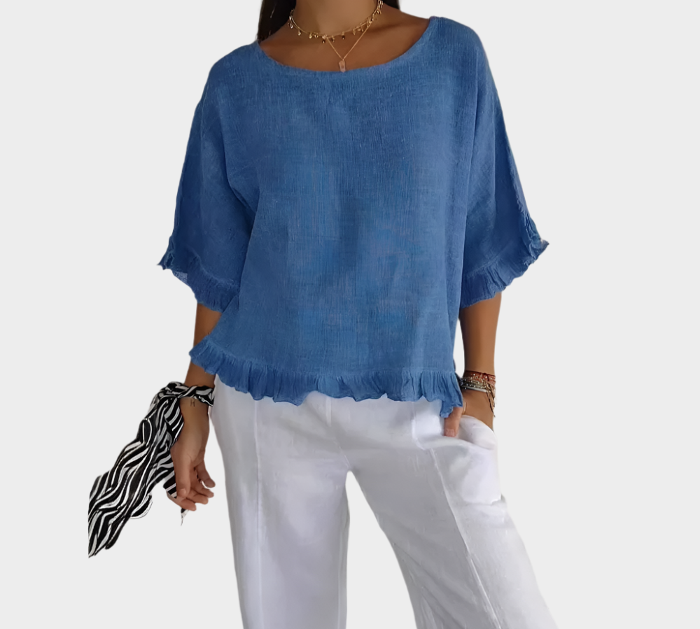 Prozračna Lanena Bluza s Šavovima i Volanima