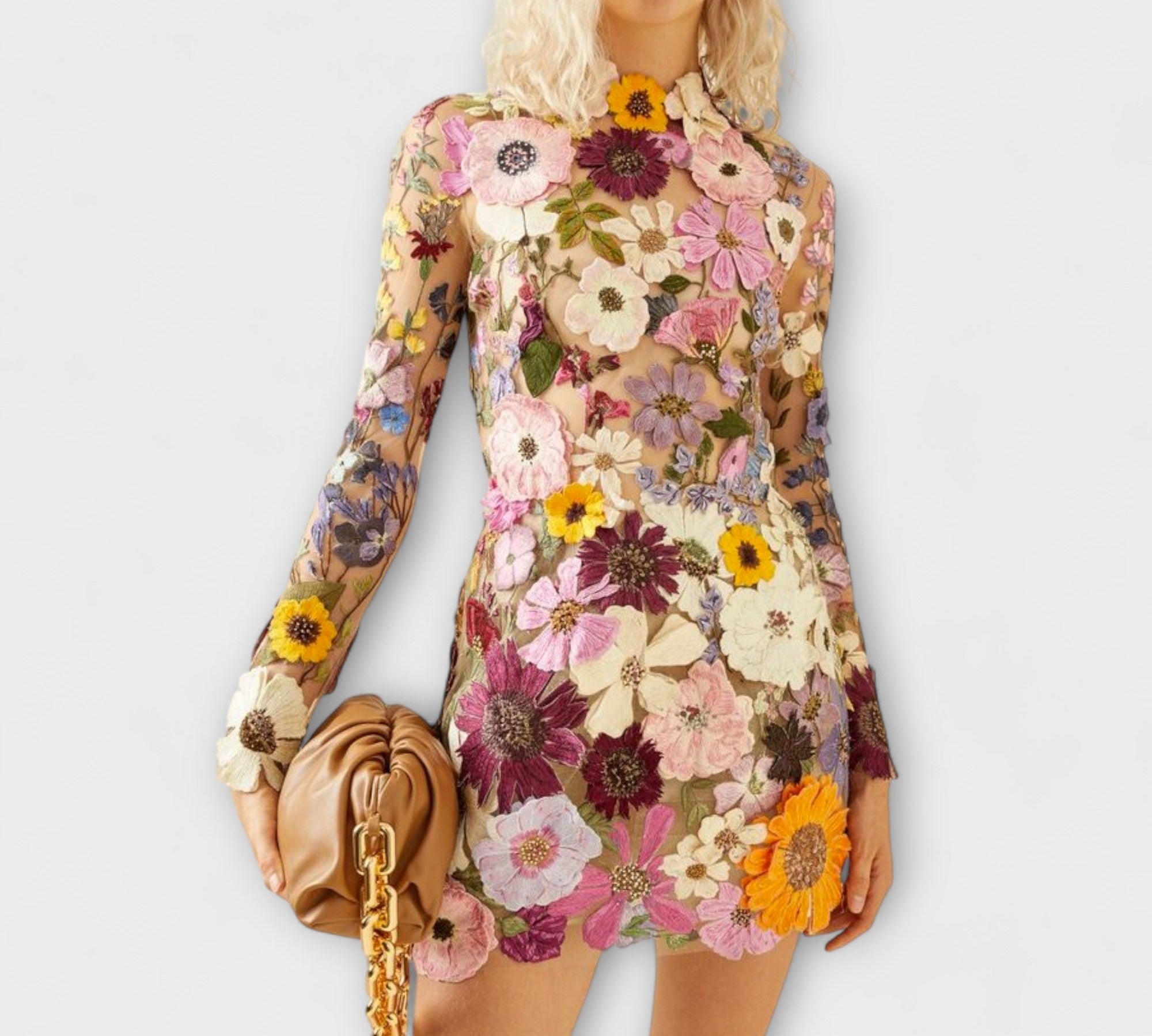 Anora™ | Crna elegantna baršunasta pripijena haljina s visokim ovratnikom