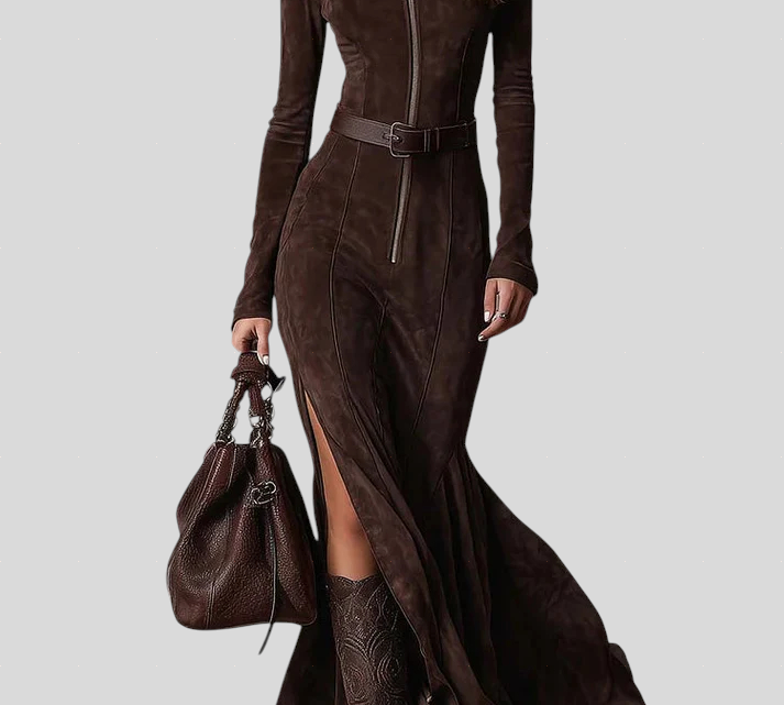 Calina™ | Opuštena midi haljina od samta s džepovima