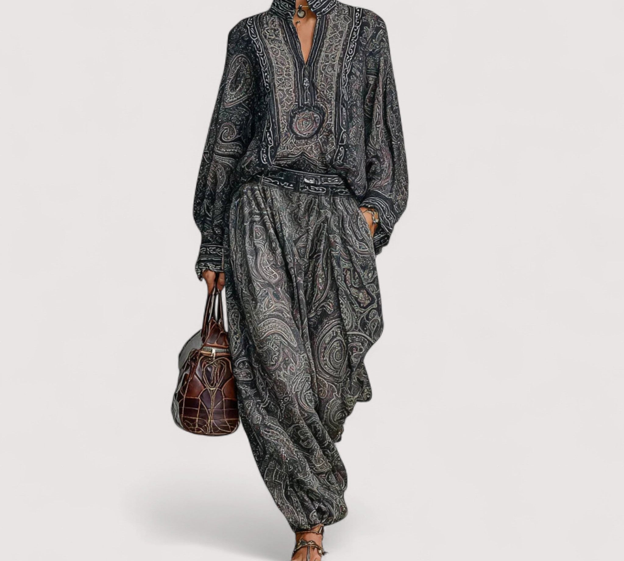 Aveline™ | Vintage set od dva dijela s majicom dugih rukava s Paisley printom i hlačama