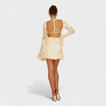 Naša haljina Julia savršena je mješavina sofisticiranosti i odvažnosti. Njezin mini kroj, polu-prozirne rukave i delikatne cvjetne vezove stvaraju ženstvenu siluetu koja ističe svaki pokret. Idealna za posebne prigode ili za isticanje na spoju.