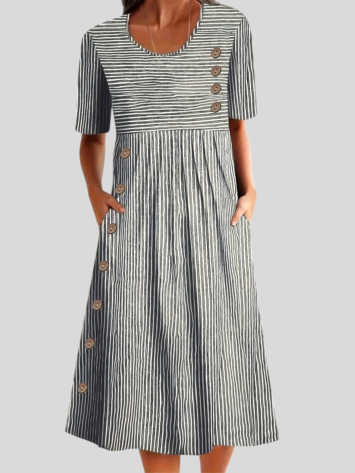 Ležerna Haljina s Ekskluzivnim Gumbima