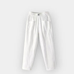 Ove hlače kombiniraju prozračno laneno platno s opuštenom elegancijom, pružajući udobnost i stil u svako doba dana. Idealne za nenametljive, a sofisticirane izglede.