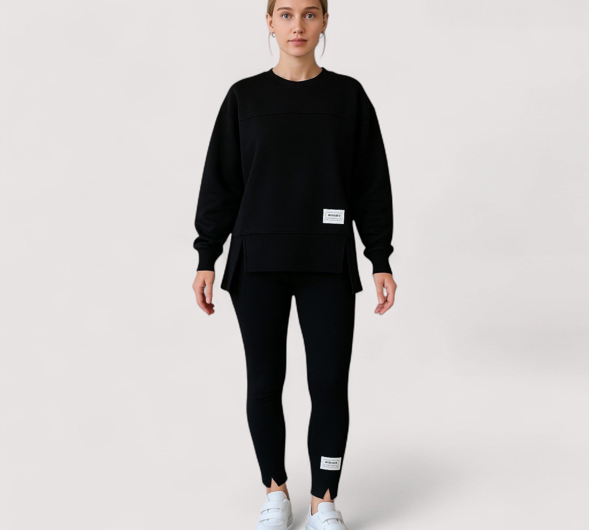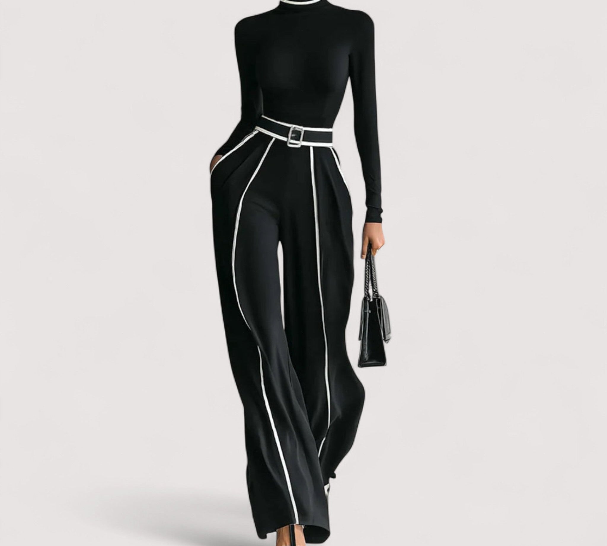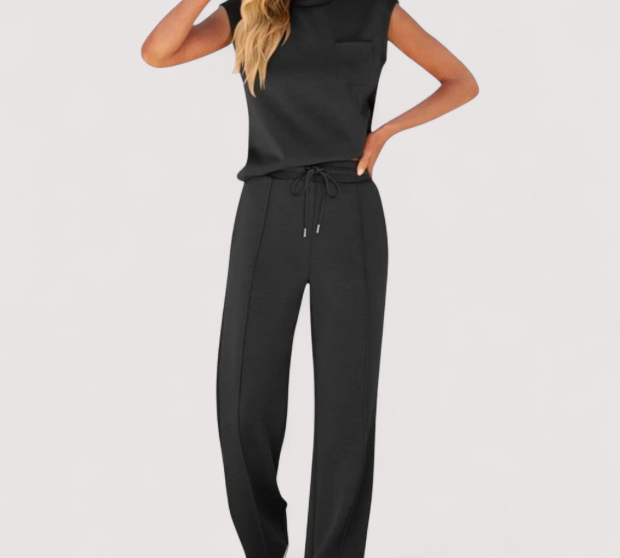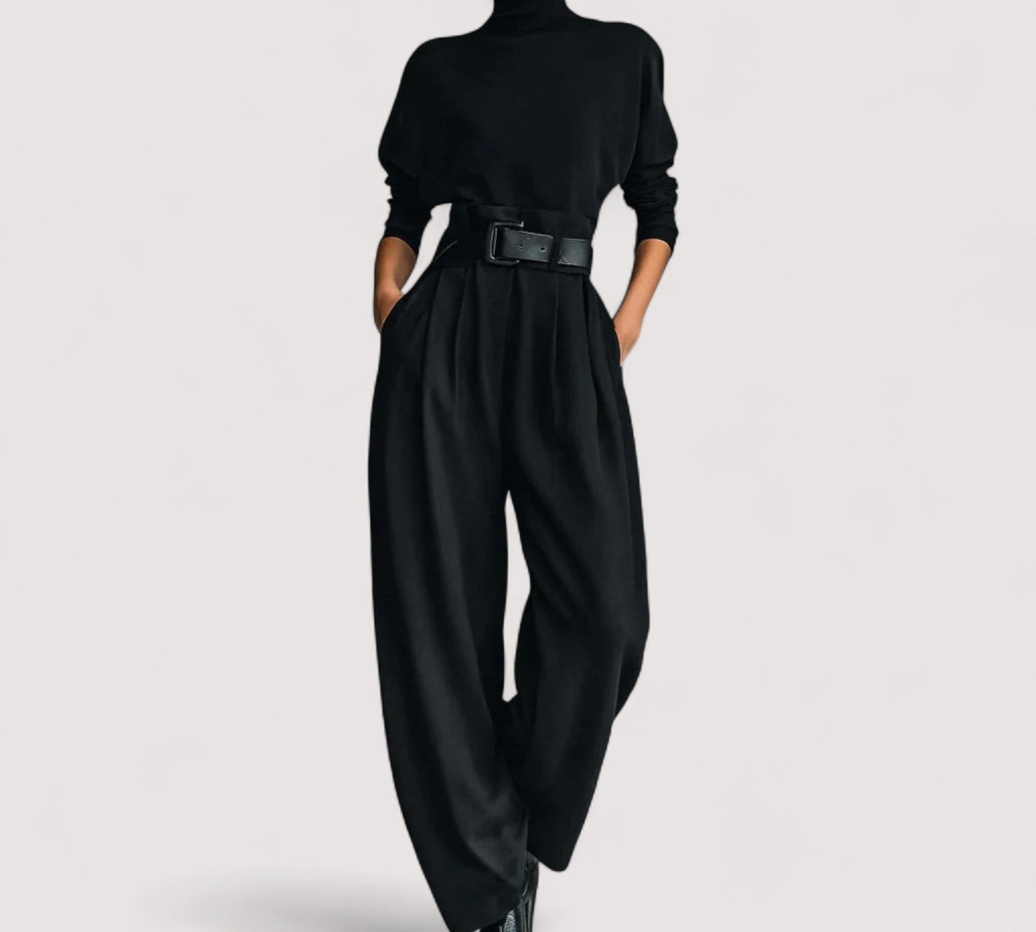 Orina™ | Crni set od dva dijela s majicom dugih rukava s dolčevita ovratnikom i ravnim hlačama