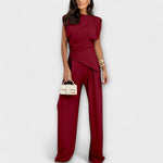 Skulpturalna elegancija s modernim dodirom: Set Sofija kombinira asimetričnu bluzu s širokim hlačama za siluetu koja je elegantna i teče s gracioznošću. Idealno za posebne prigode ili da unaprijedite svoj svakodnevni izgled bez napora.