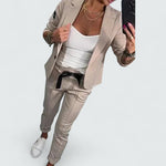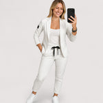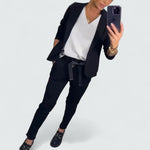 Uronite u nenametljiv stil s ovim elegantnim kompletom blazer + hlače za jogu. Krojeni blazer i ležerne hlače savršen su izbor za radne dane ili vikende u pokretu.