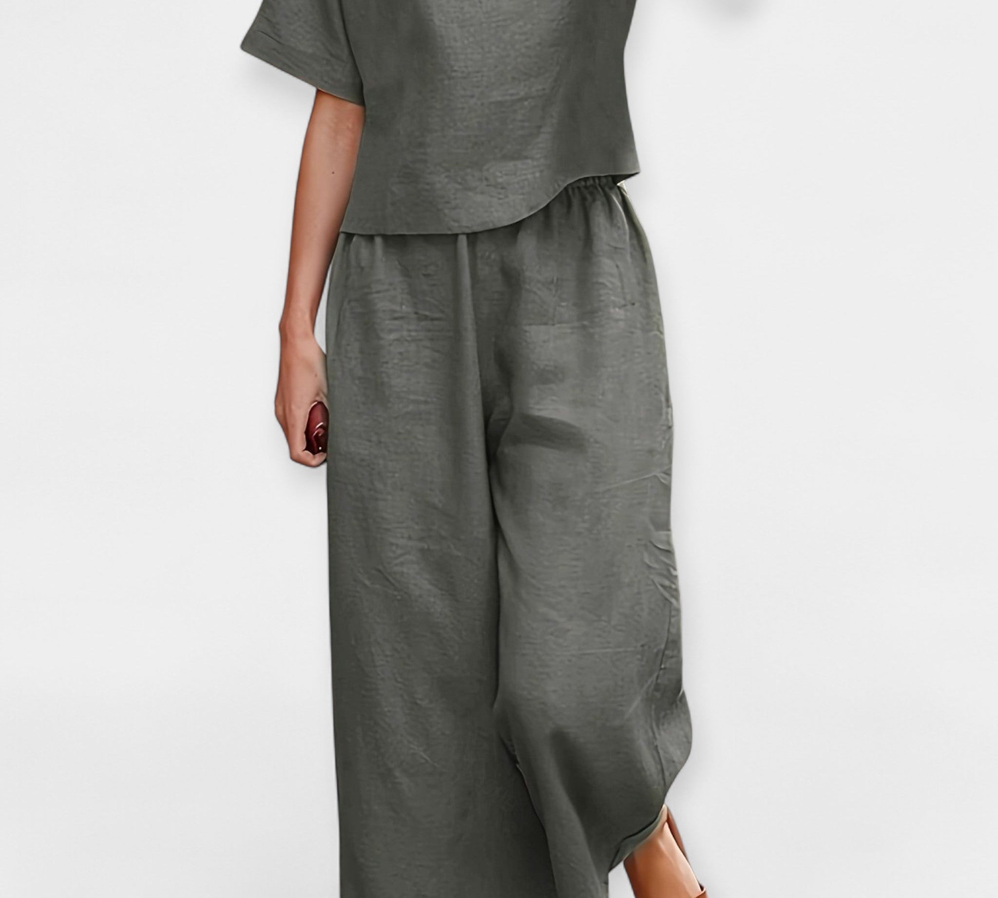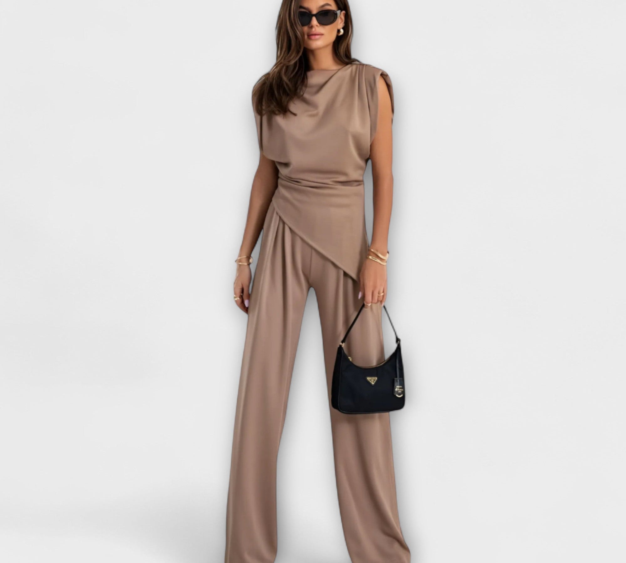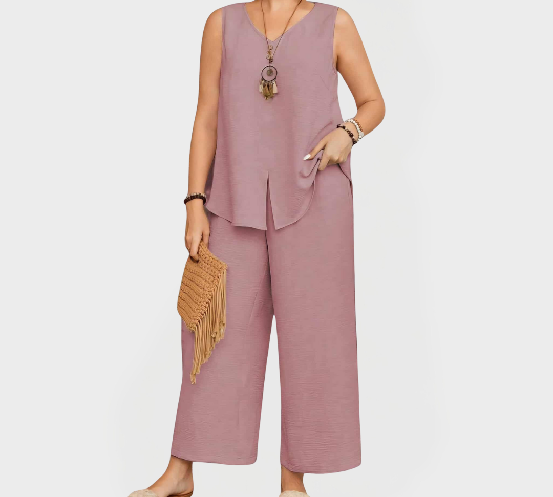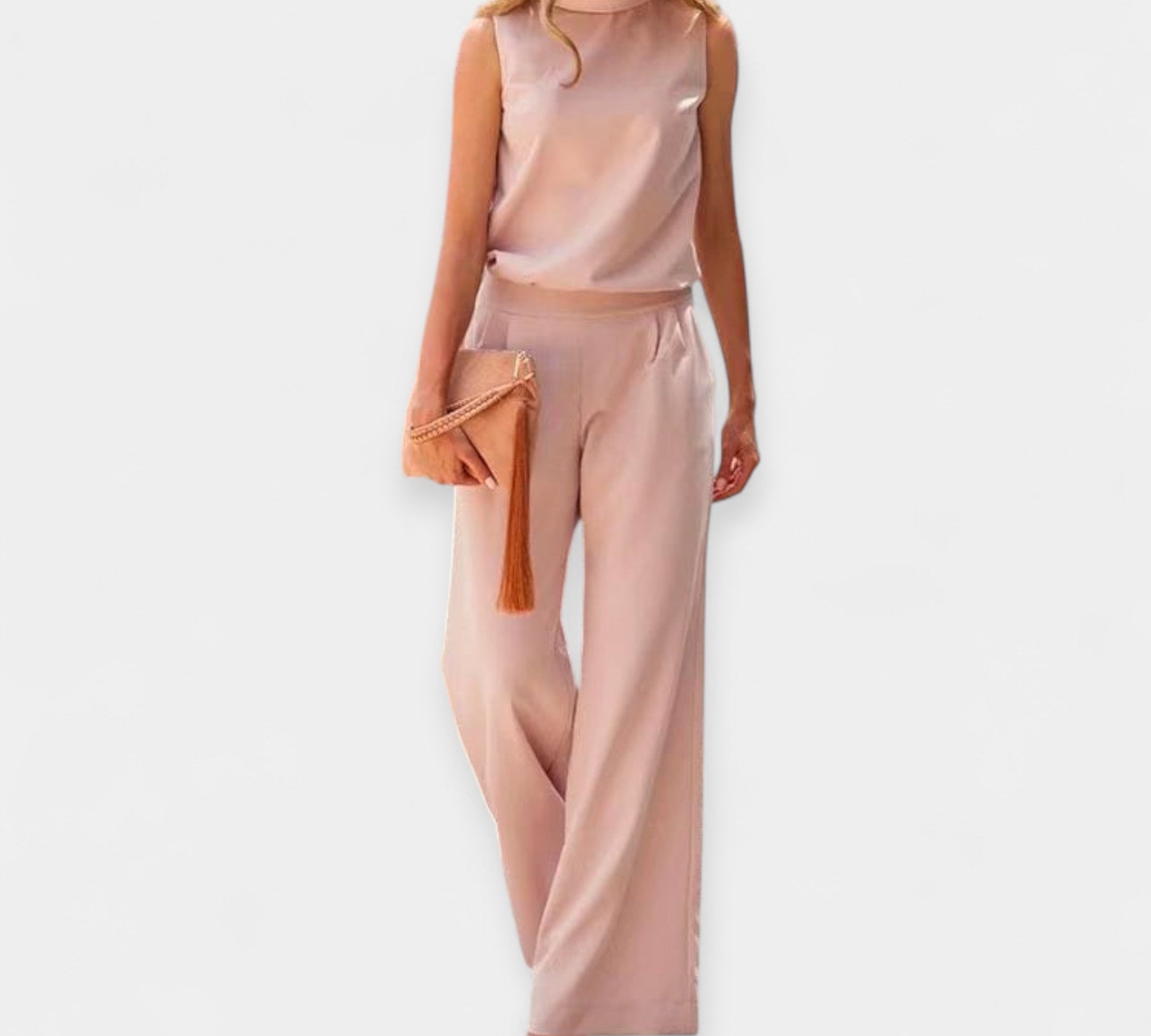 Set s topom i hlačama u jednobojnoj nijansi s dekolteom