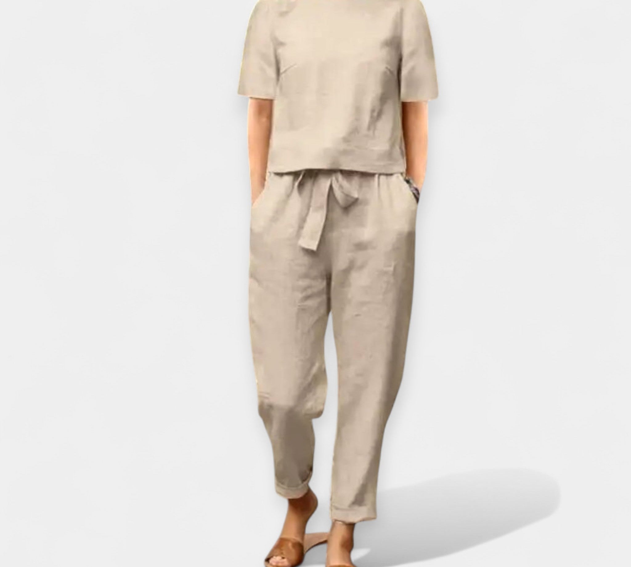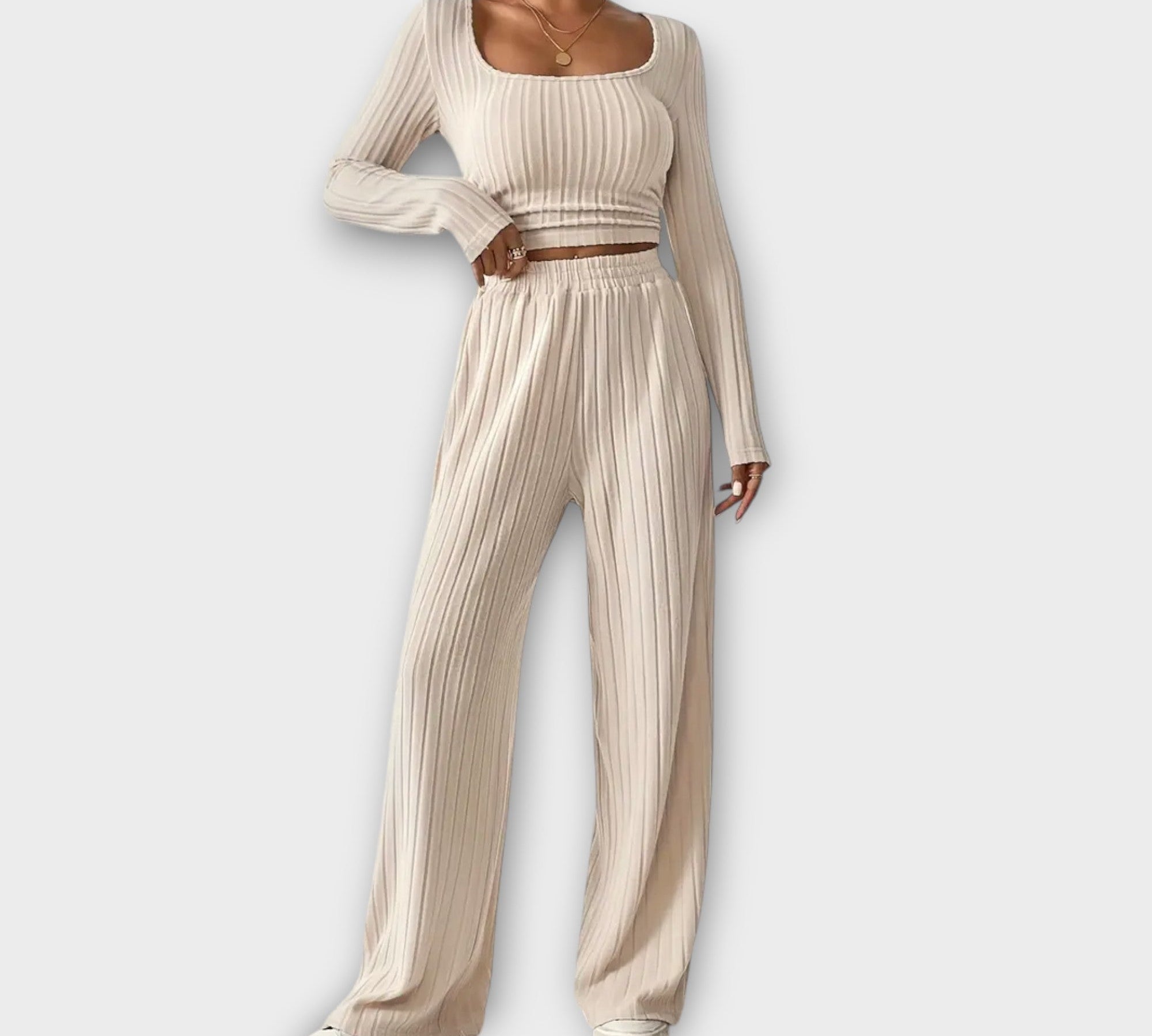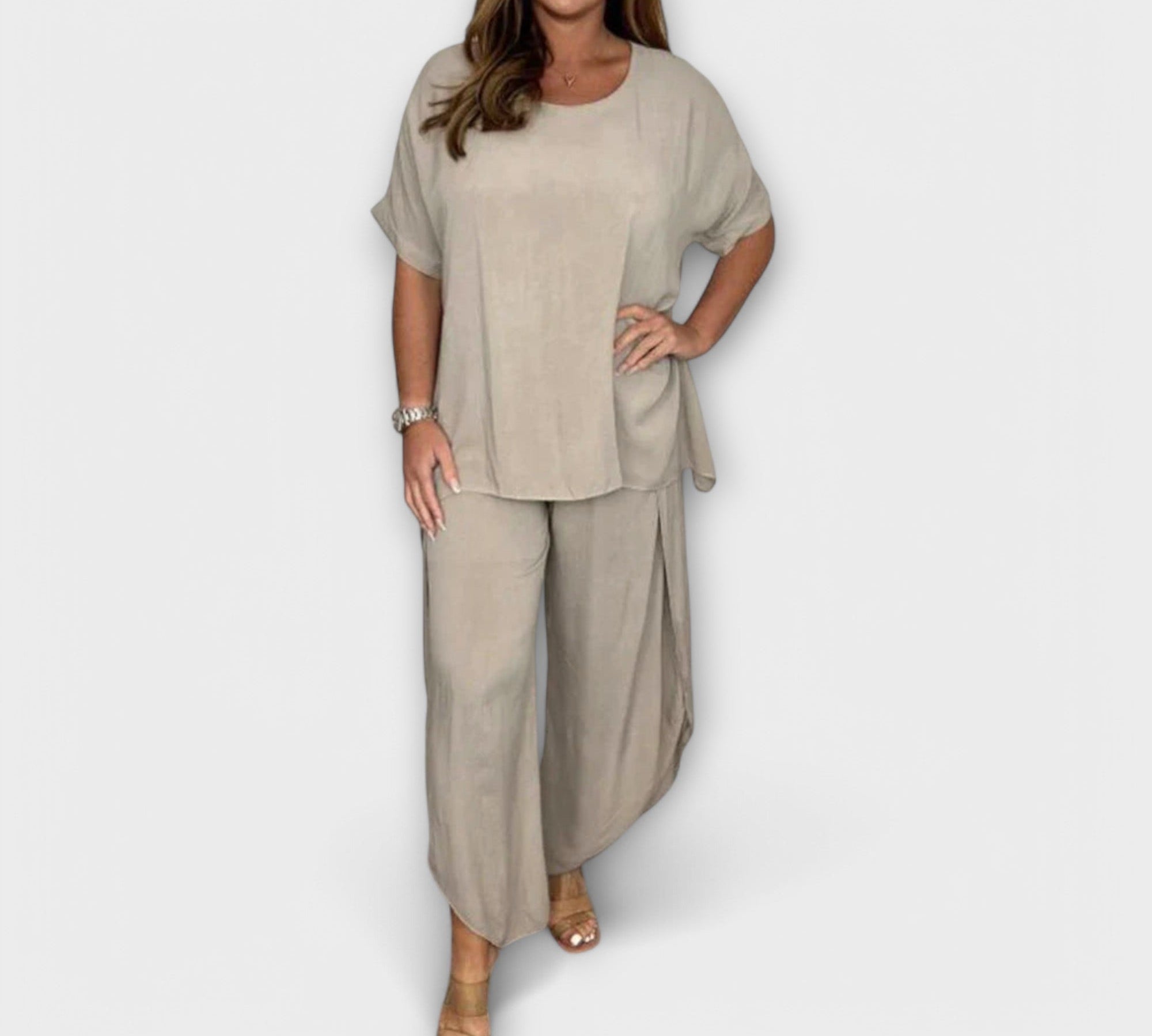 Set s topom i hlačama u jednobojnoj nijansi s dekolteom
