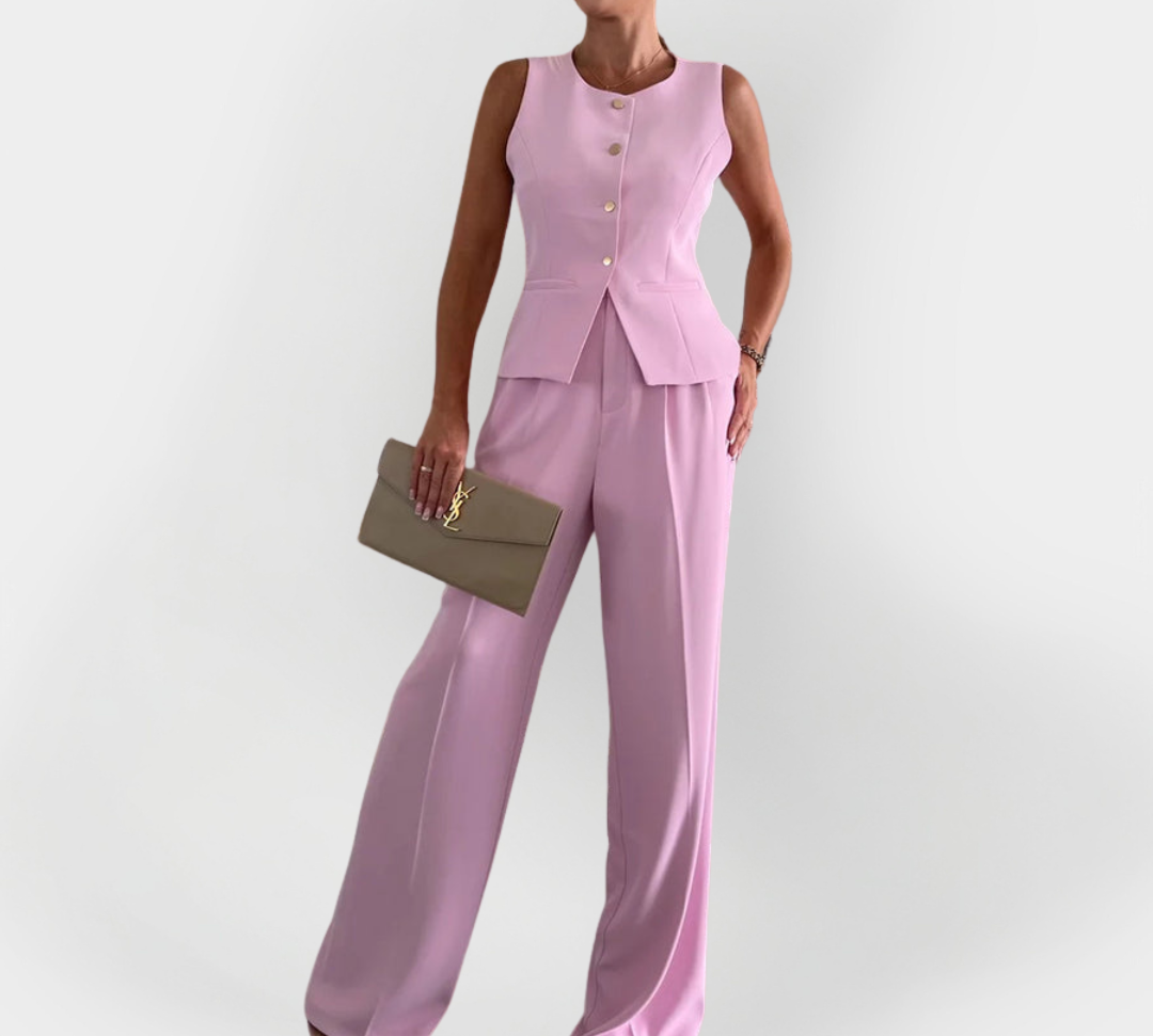 Orly - Elegantni komplet bezrukavnog prsluka s gumbima i kratkih hlača