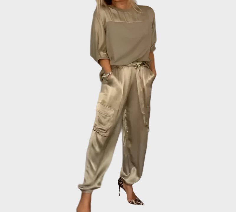 Satin Set s Općenitom Majicom i Cargo Hlačama