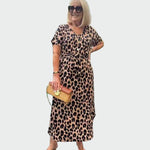 Izdvojite se ovim upečatljivim haljinom s leopard uzorkom, koja spaja eleganciju i udobnost za svakodnevne i posebne prigode.