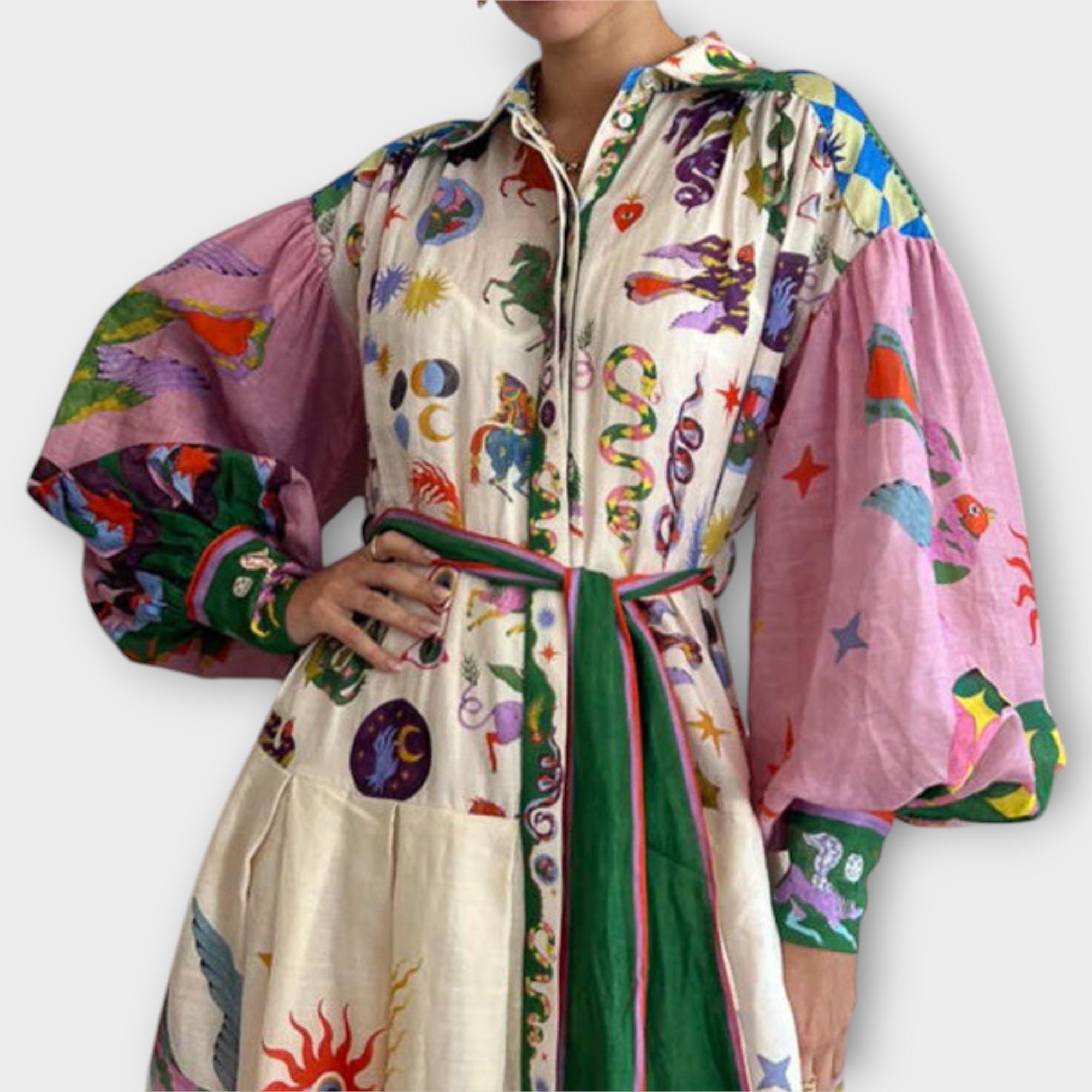 Istaknite svoj osobni stil s ovom jedinstvenom maxi haljinom, idealnom za žene koje vole upadljive kombinacije. Njezin elegantan kroj spaja se s modernim detaljima za dojam u svakom trenutku dana.
