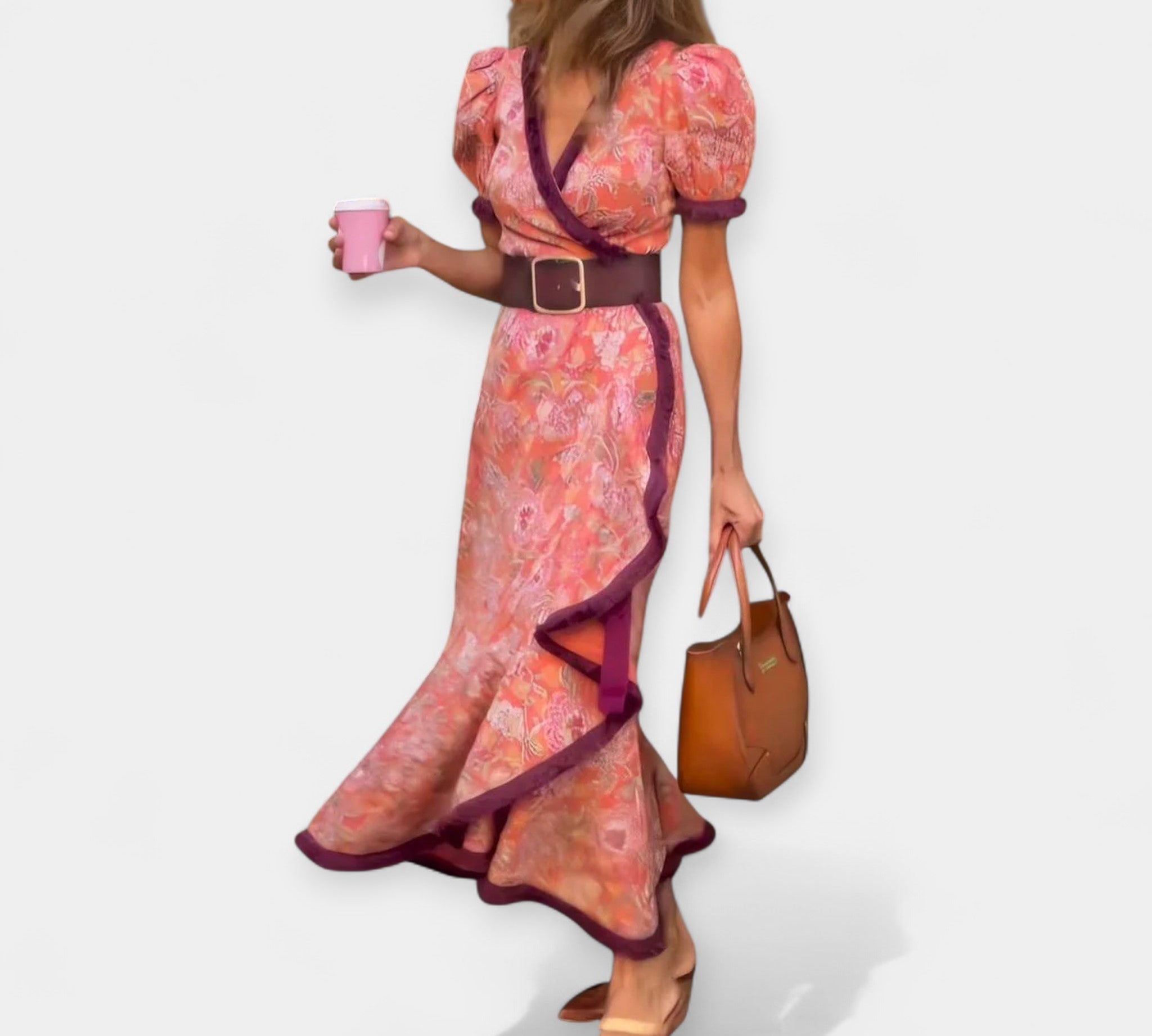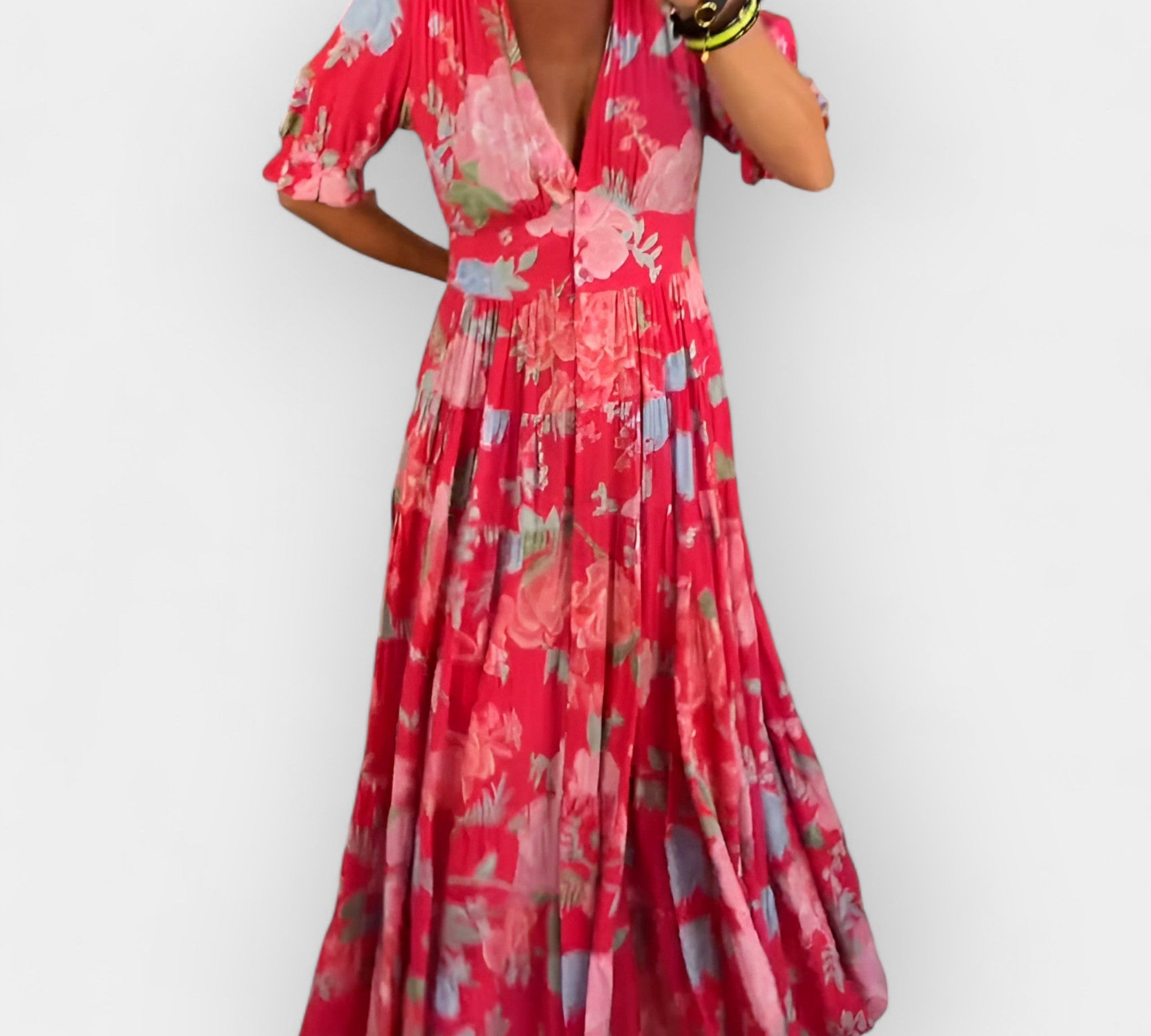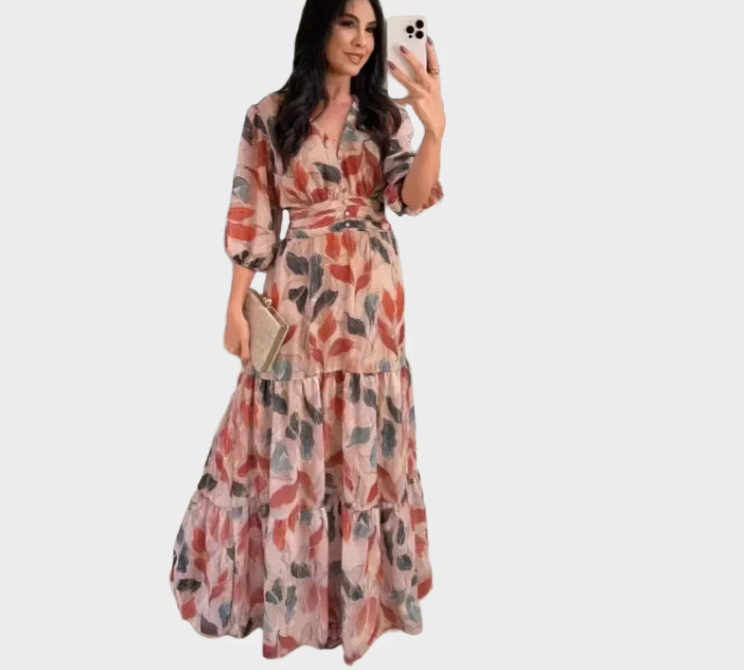 Duga haljina s cvjetnim uzorkom i udobnim krojem za elegantne dane