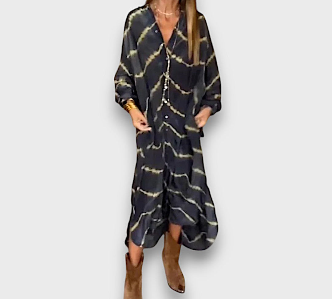 Maxi haljina Tie-Dye s gumbima i dugim rukavima