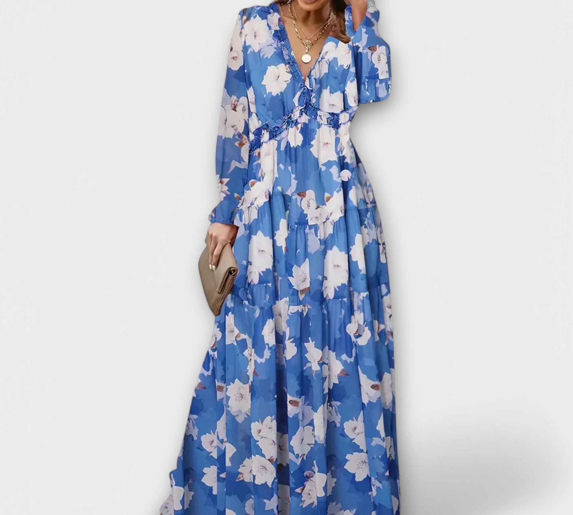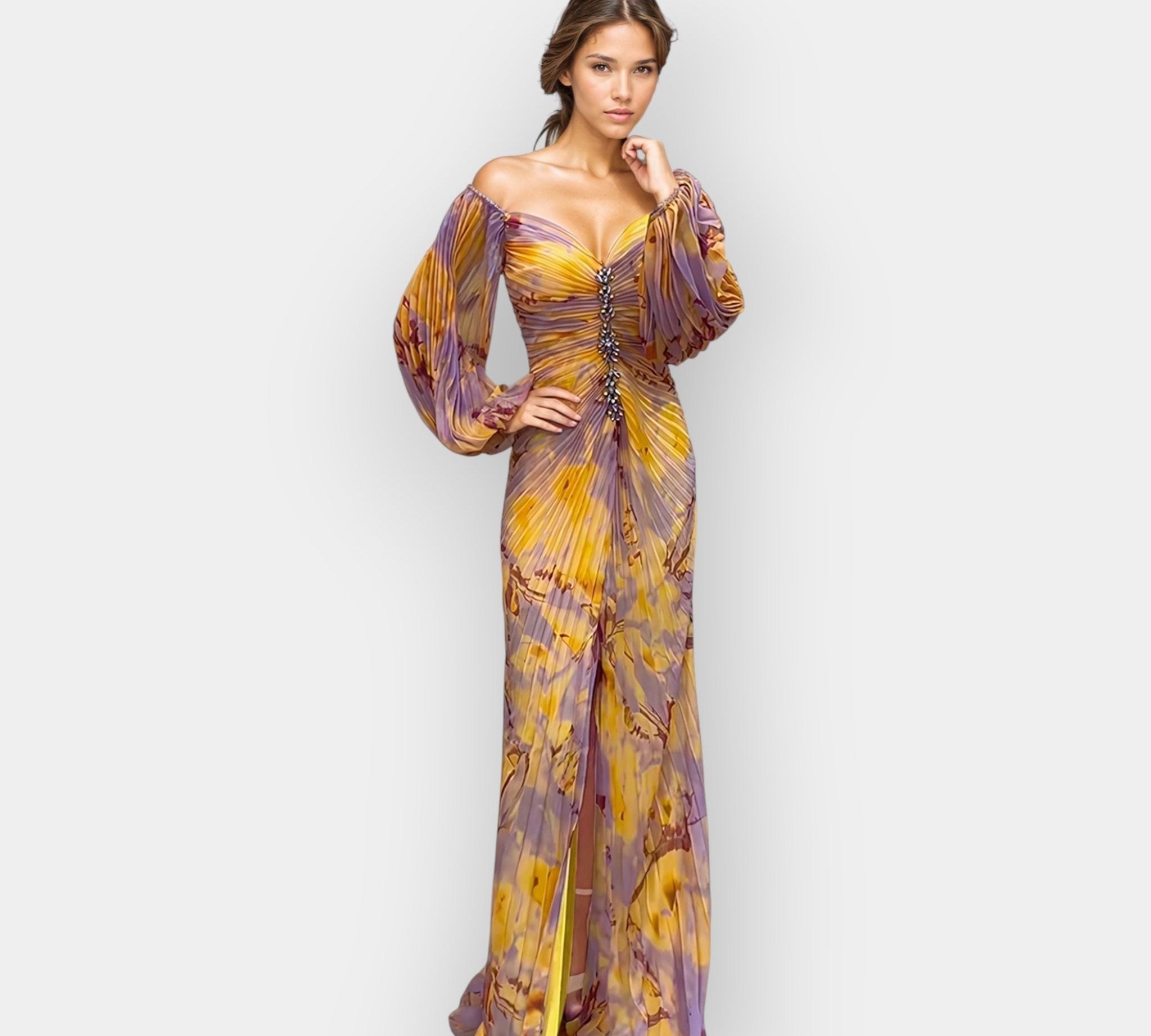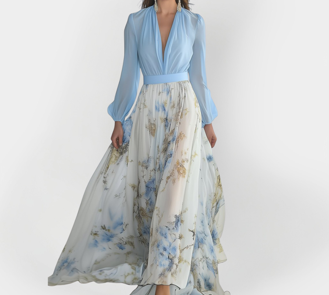 Vazdušna Maxi haljina s bogatim nabrkanijim širim rukavima