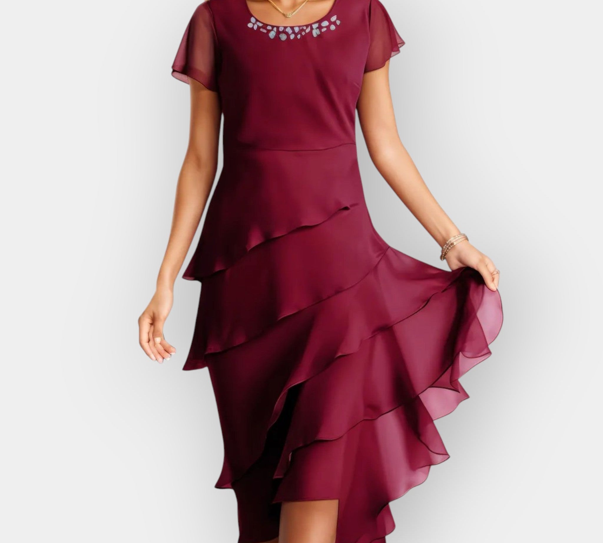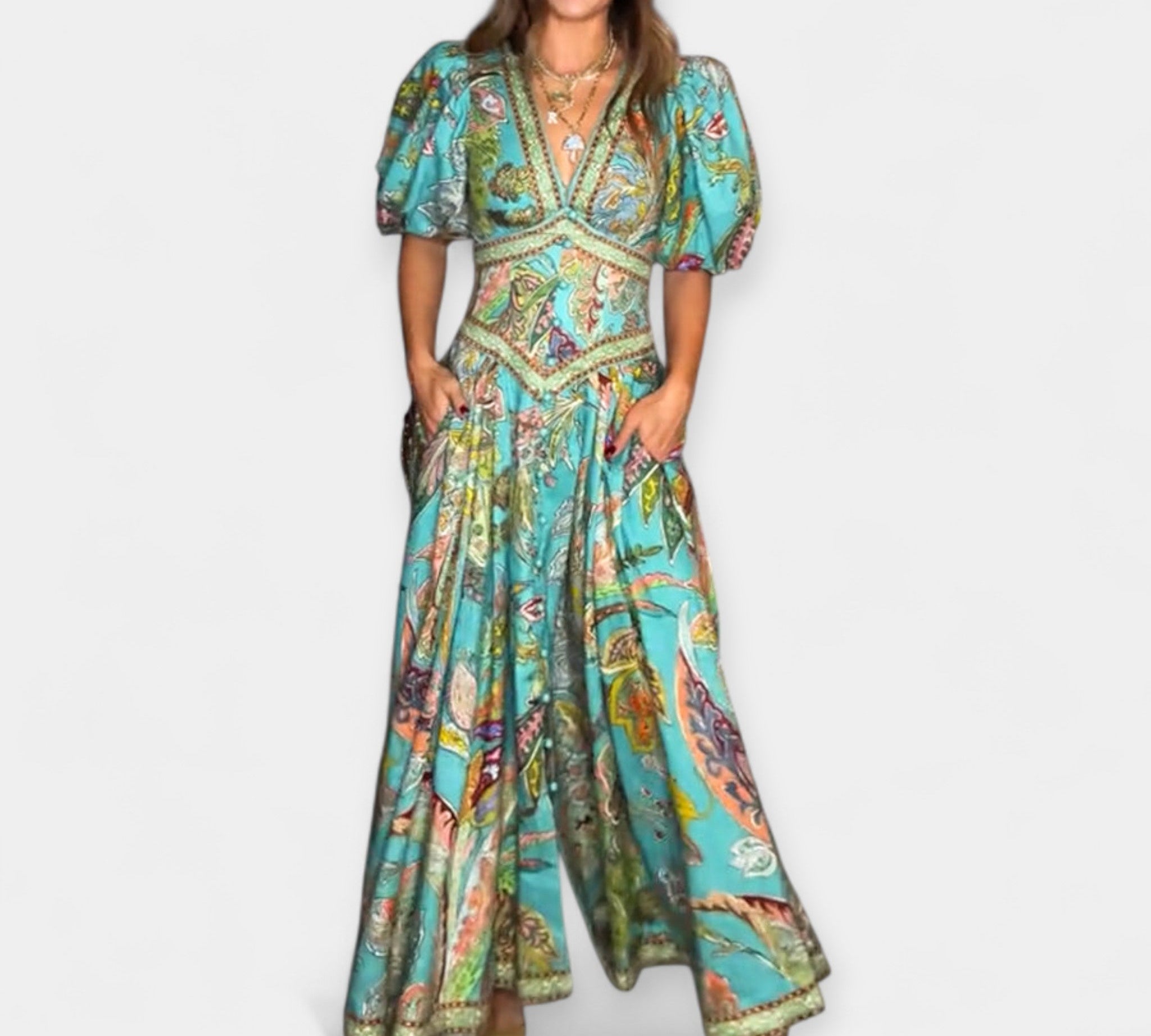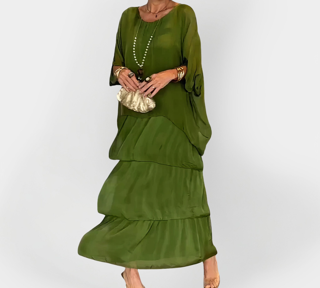 Vazdušna Maxi haljina s bogatim nabrkanijim širim rukavima