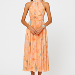 Elegantna i lagana haljina s impresivnim vezanim izrezom i romantičnim dojmom. Remen u struku naglašava siluetu, dok prozračna plisirana suknja daje pokret i profinjenost. Idealna za vjenčanja, ljetne događaje ili večeri prepune stila.