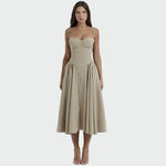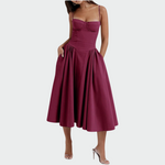 Uski gornji dio s tankim naramenicama naglašava ženstvenost, dok lepršava suknja omogućuje udobnost i slobodu pokreta.