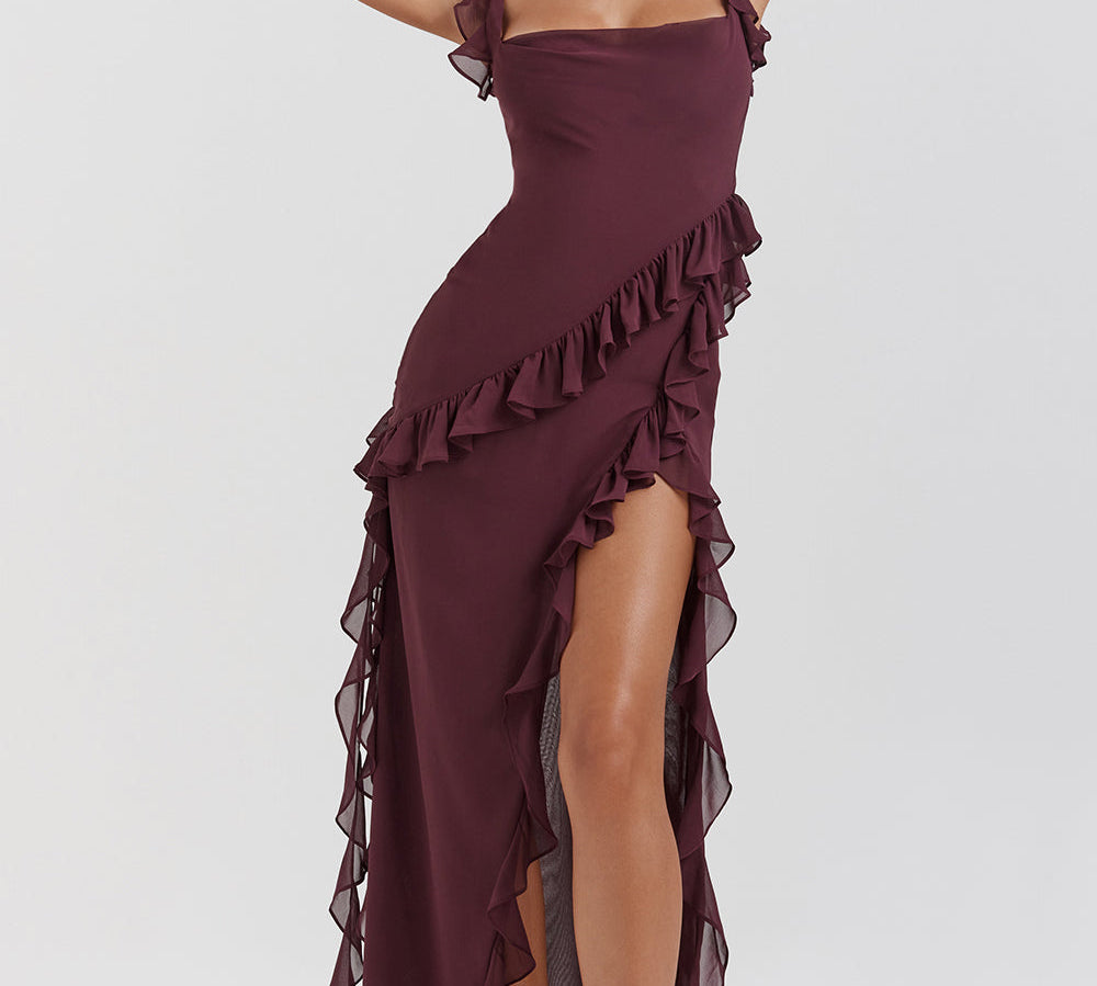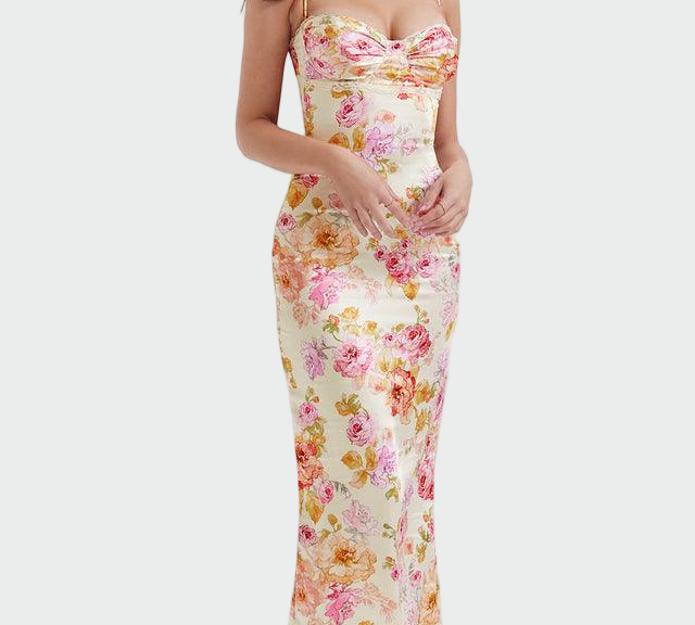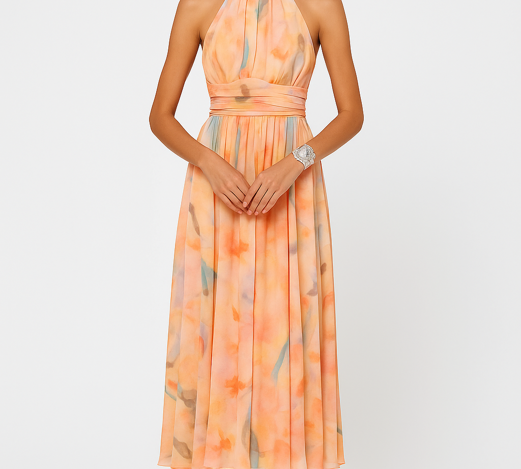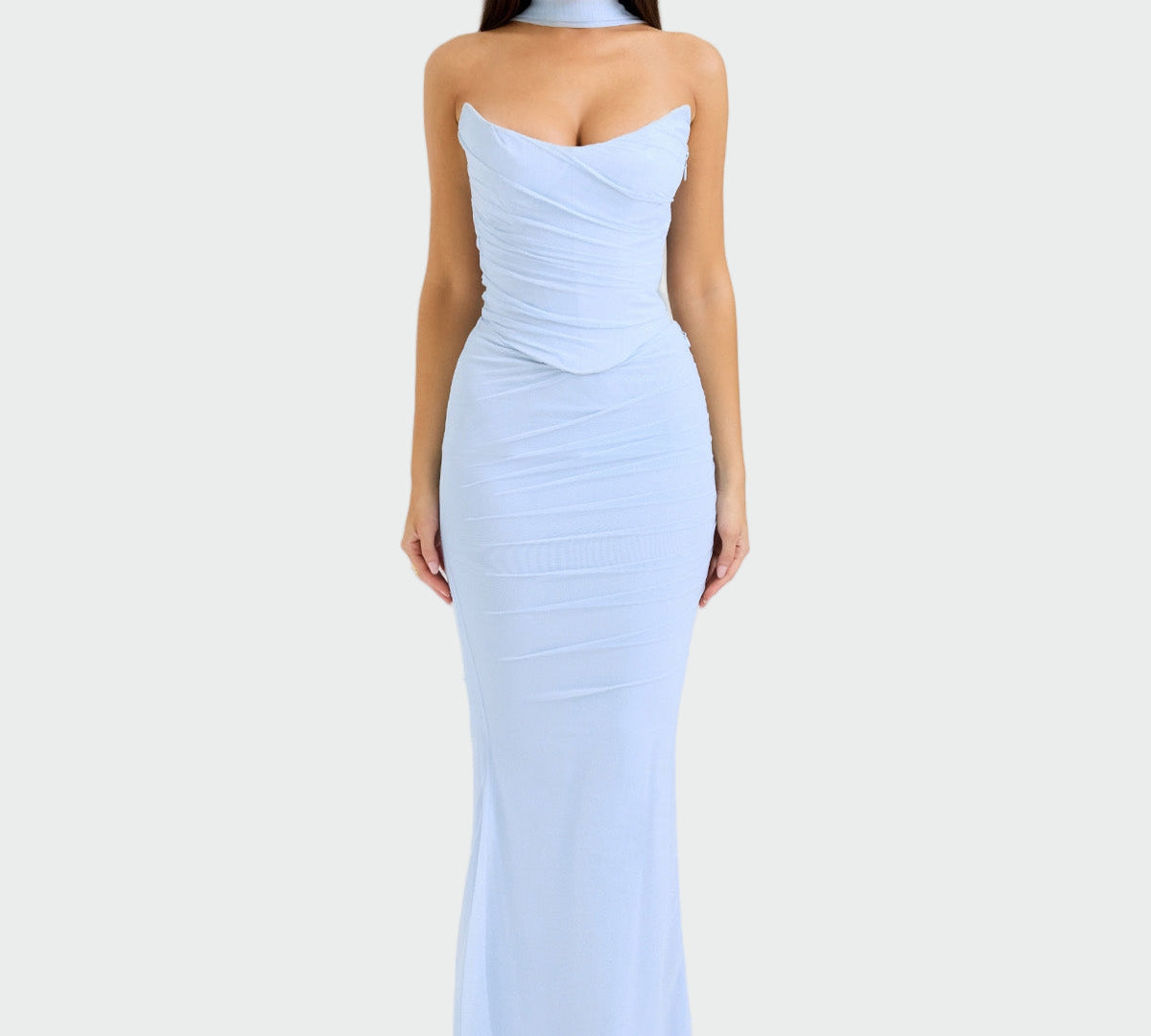 Lora | Duga drapirana haljina s ogrlicom-korsažom