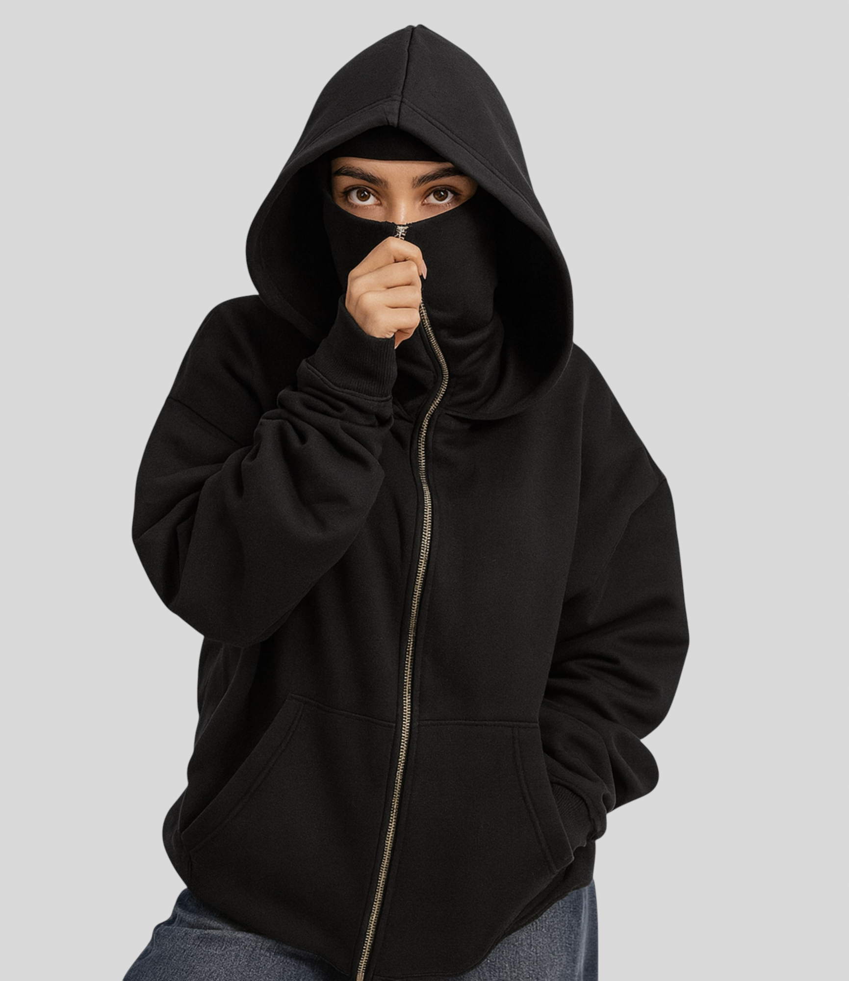 Podigni svoj streetwear uz hoodie od punijeg flisa, opuštenog oversized kroja i široke kapuljače. Prednji patentni zatvarač diže se visoko i pretvara se u integriranu zaštitu za lice/vrat — idealno za vjetar i dodatnu toplinu bez dodatnih dodataka. Premium završna obrada, klasični “kenguru” džepovi i izdržljiva konstrukcija prate te od grada do putovanja, od treninga do aftera, uz maksimalnu udobnost.