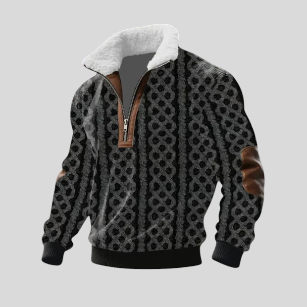 Ovaj pulover spaja vrhunsku udobnost i moderan dizajn. Topla unutarnja podstava pruža ugodan osjećaj i odličnu izolaciju tijekom hladnih dana. Gornji dio s teksturiranim geometrijskim uzorkom daje karakter i ističe stil, dok posebni detalji na patentnom zatvaraču i rukavima dodaju dozu profinjenosti. Savršen izbor za muškarce koji žele kombinirati praktičnost i elegantan izgled.