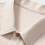 Klasična polo kragna s trostrukim kopčanjem na gumbe i diskretni detalji.