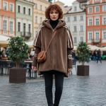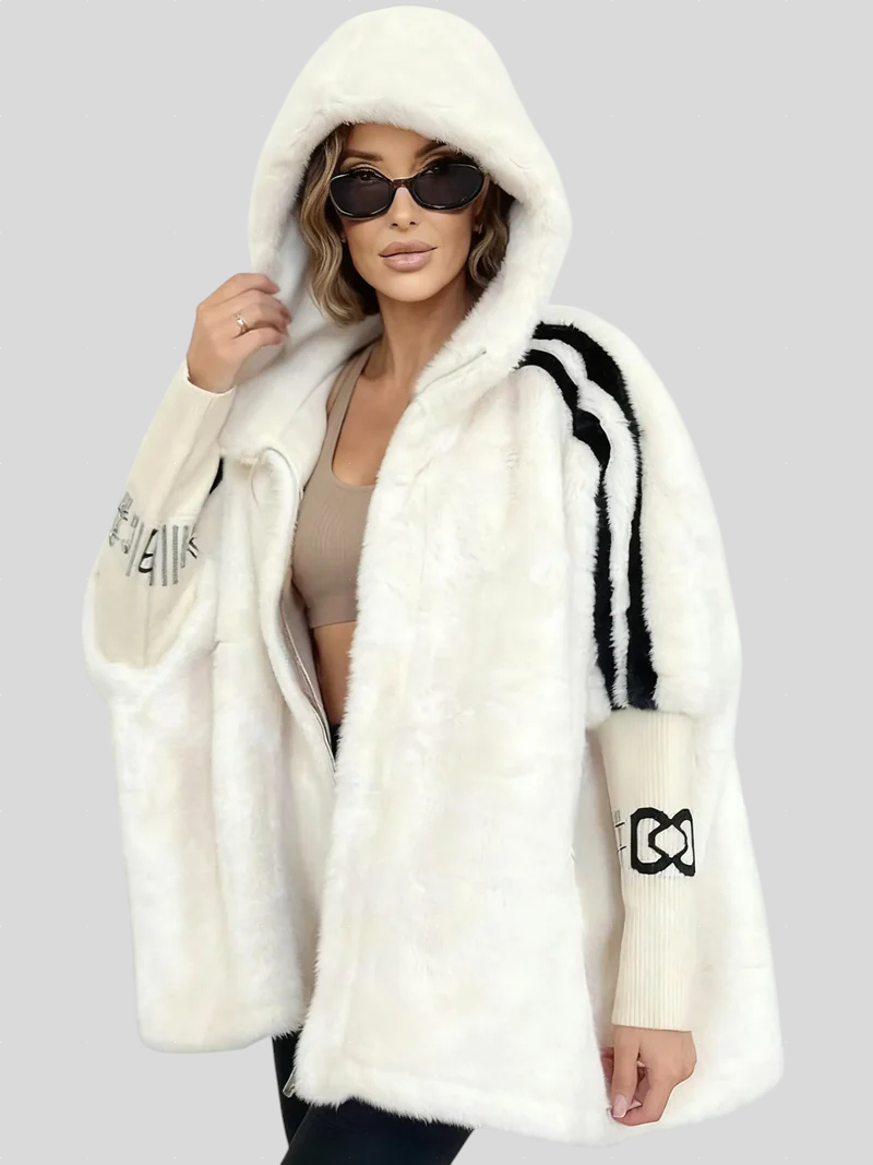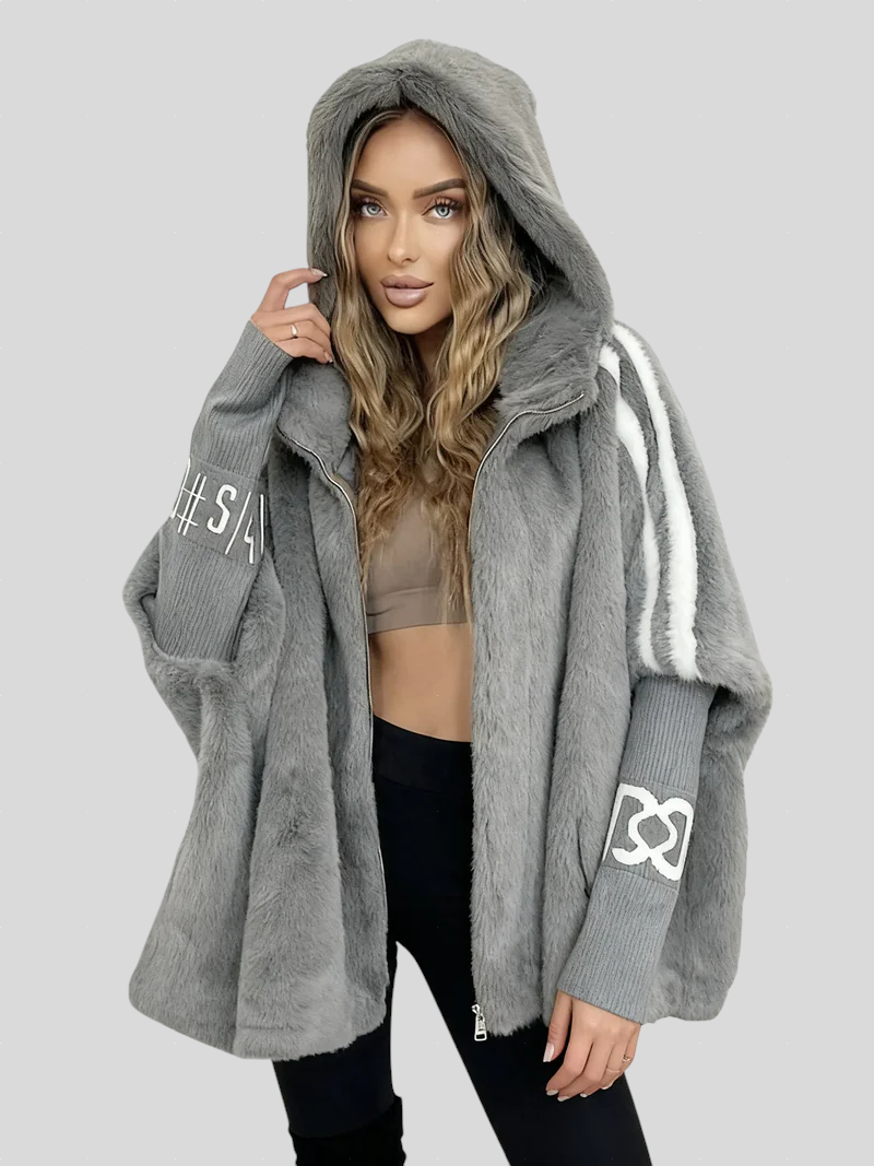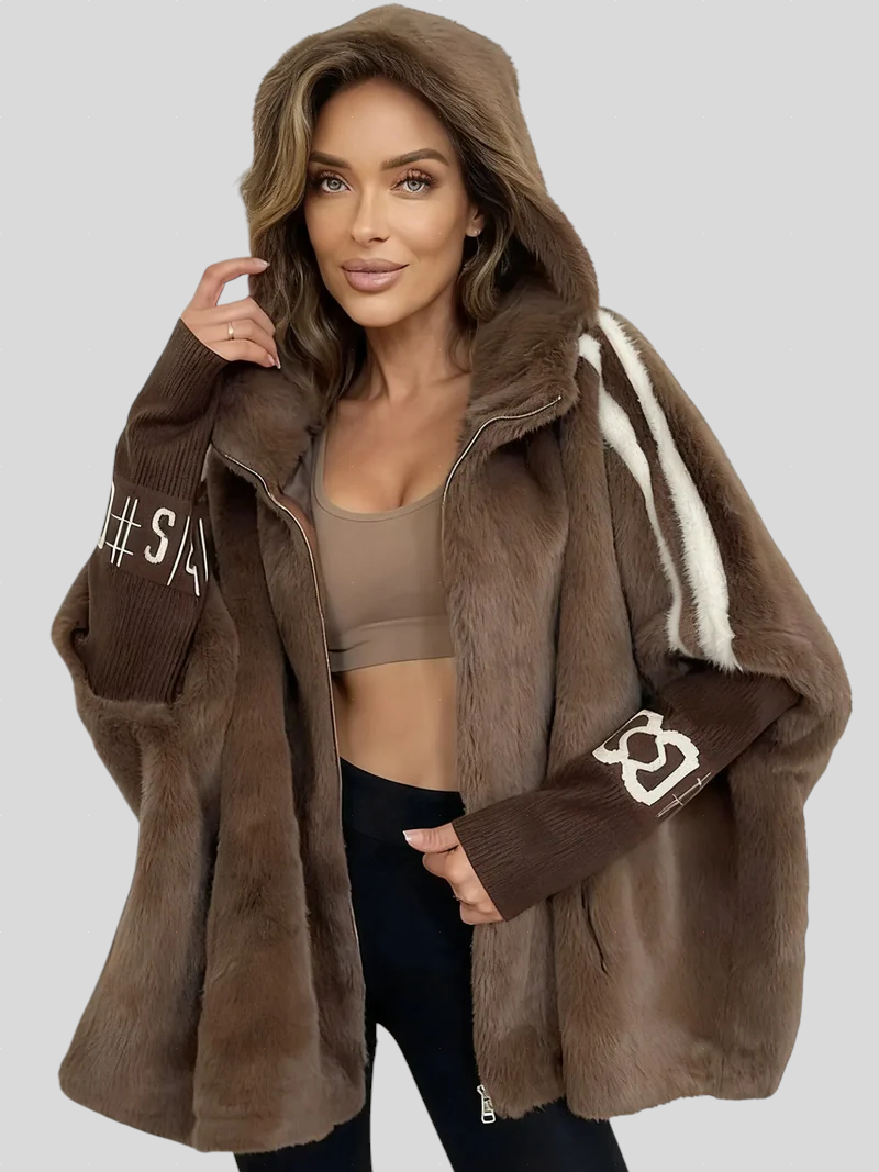 Ovaj zimski kaput spaja sofisticirani izgled efekta krzna s modernim i udobnim dizajnom. Pruža široku kapuljaču, mekanu teksturu i ležeran pad koji nježno obavija tijelo. Rukavi s pletenim detaljima dodaju prepoznatljiv modni štih, čineći ovu jaknu idealnom za elegantne urbane kombinacije. Komad koji lako podiže svaki outfit — od ležernog do profinjenog.