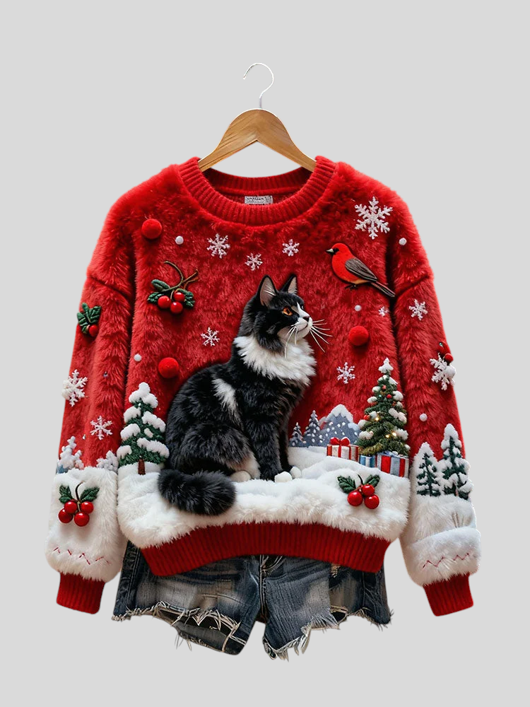 Božićna Majica S Mačkom U Reljefu – Magija, Udobnost I Blagdanski Ugođaj