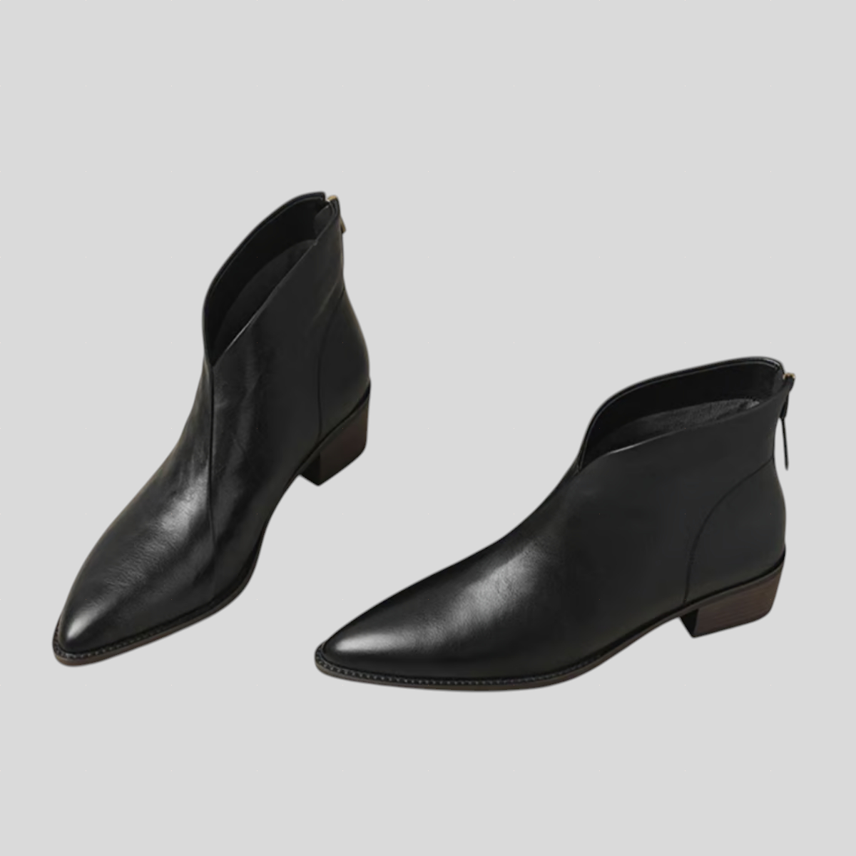 Ove gležnjače utjelovljuju spoj profinjenosti, udobnosti i suvremenog dizajna. Izrađene od visokokvalitetnih materijala, pružaju savršeno pristajanje i izdržljivost tijekom cijelog dana. Njihov elegantan oblik s niskom petom osigurava stabilnost i lakoću kretanja, dok minimalistički kroj dodaje dašak luksuza svakom outfitu — bilo poslovnom ili ležernom.