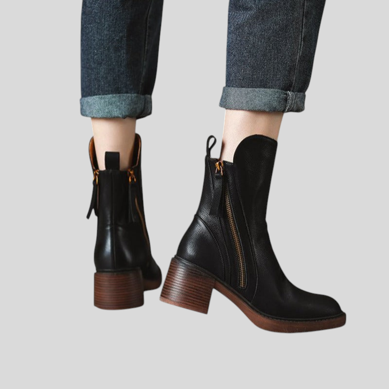 Ove gležnjače stvorene su za one koji žele spojiti karakter, eleganciju i udobnost u svakodnevnom nošenju. Moderan dizajn, praktični bočni zatvarač i stabilna široka peta pružaju sigurnost pri hodu i upečatljiv izgled. Rafinirana završna obrada i čvrsta struktura čine ih idealnim izborom za urbane, ležerne ili sofisticirane kombinacije.