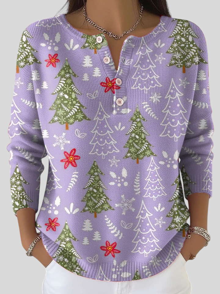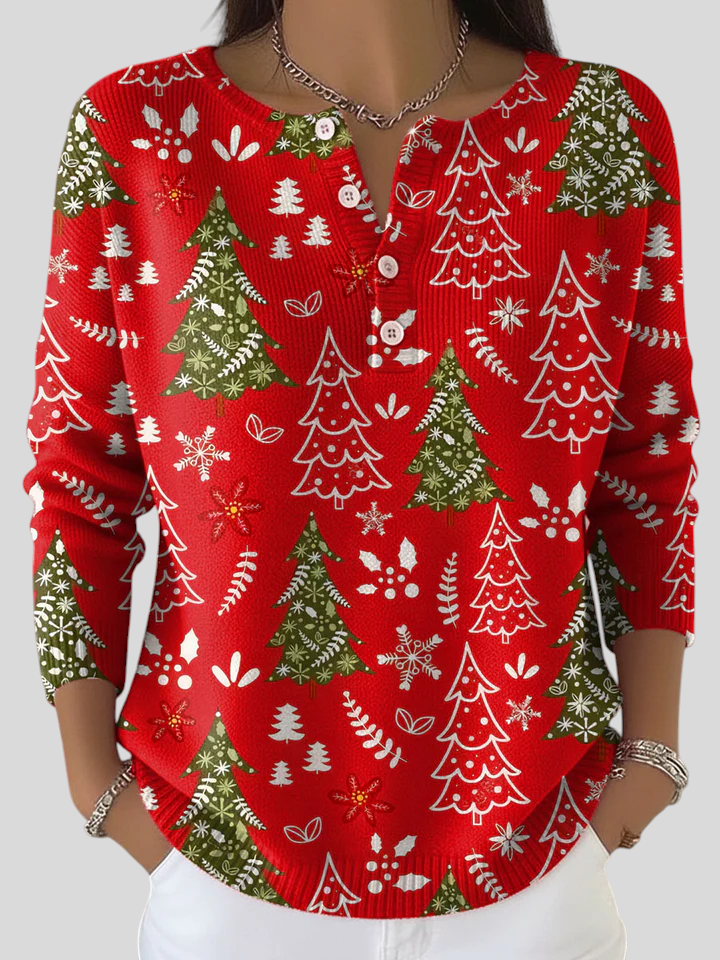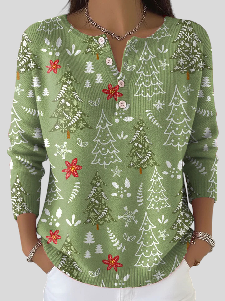 Pulover Sophie donosi blagdanski ugođaj u vaše svakodnevne kombinacije, s razigranim božićnim motivima koji plijene pažnju. Prednji gumbi daju moderan i ženstven detalj, dok blagdanski uzorak svaki outfit pretvara u pravu malu proslavu. Udoban, lagan i savršen za nošenje i kod kuće i u posebnim trenucima — idealan za sve koji vole osjetiti čaroliju blagdana.