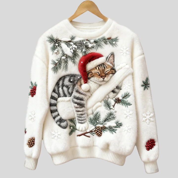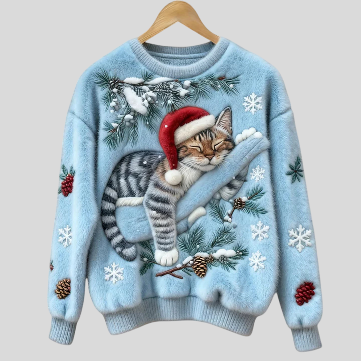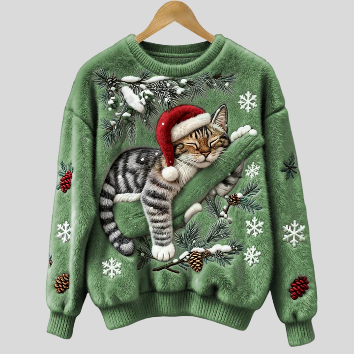 Božićna Majica S Mačkom U Reljefu – Blagdanski Ugođaj Uz Maksimalnu Udobnost