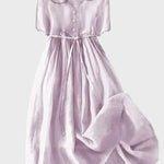 Ova nježno ljubičasta haljina odiše elegancijom i romantikom, idealna za svaku ženu koja želi zablistati bezvremenskim izgledom. Minimalistički kroj ističe ženstvenost, dok pojas u struku suptilno naglašava liniju tijela.