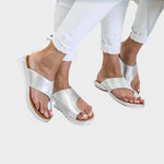 Istaknite svoj ljetni stil s ovim zlatnim sandalama. Spoj udobnosti i sjaja čini ih idealnim za svaku priliku, od šetnji gradom do trenutaka opuštanja.
