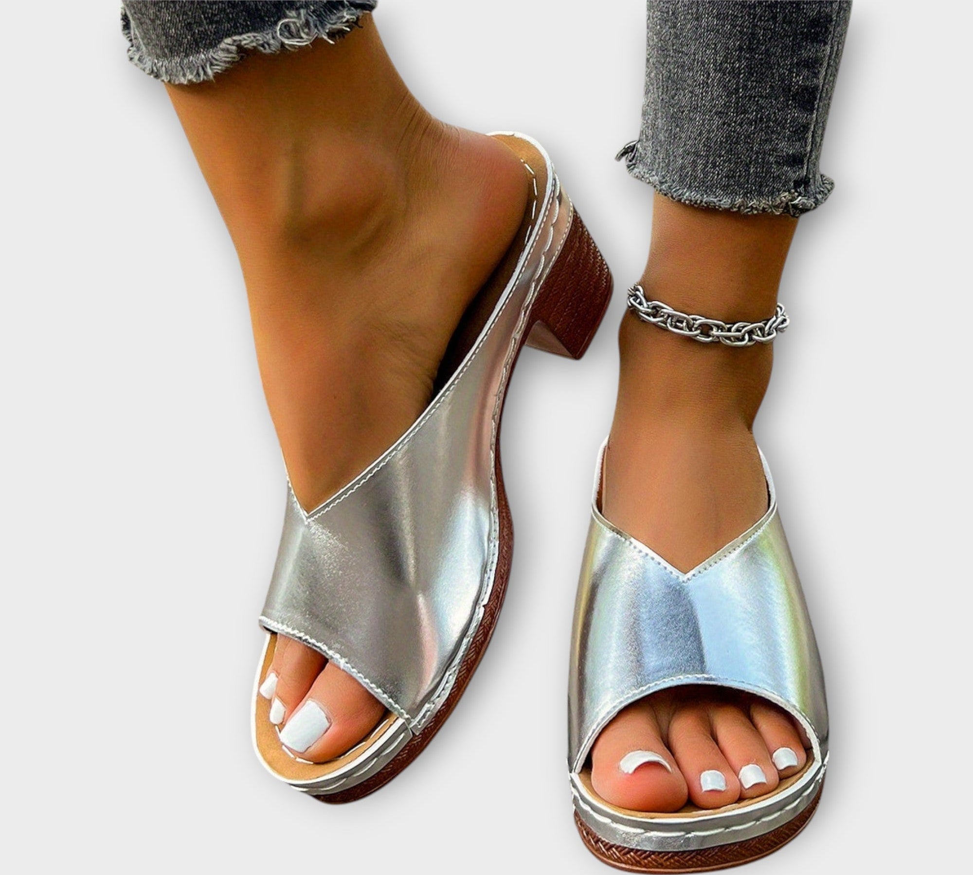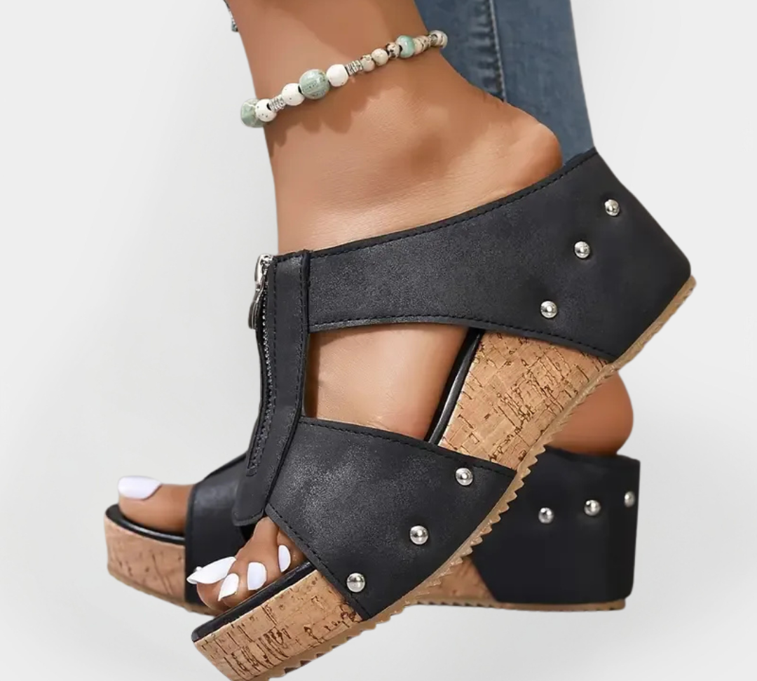 Udobne sandale s petom i patentnim zatvaračem