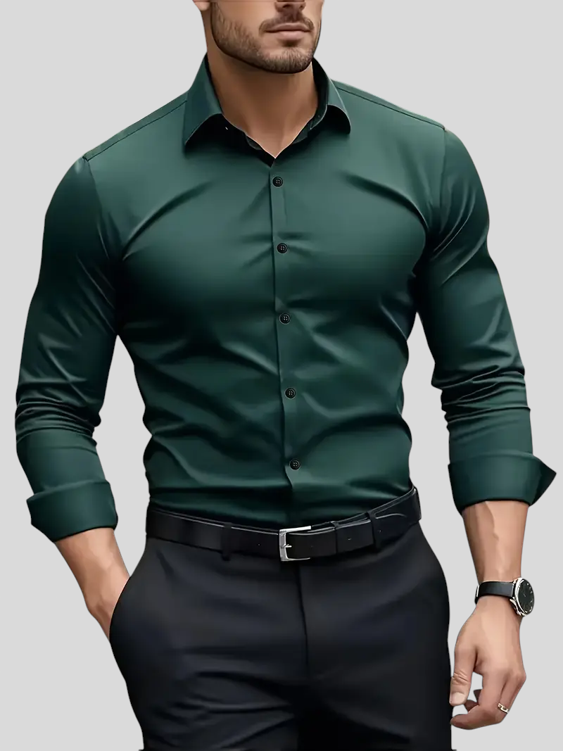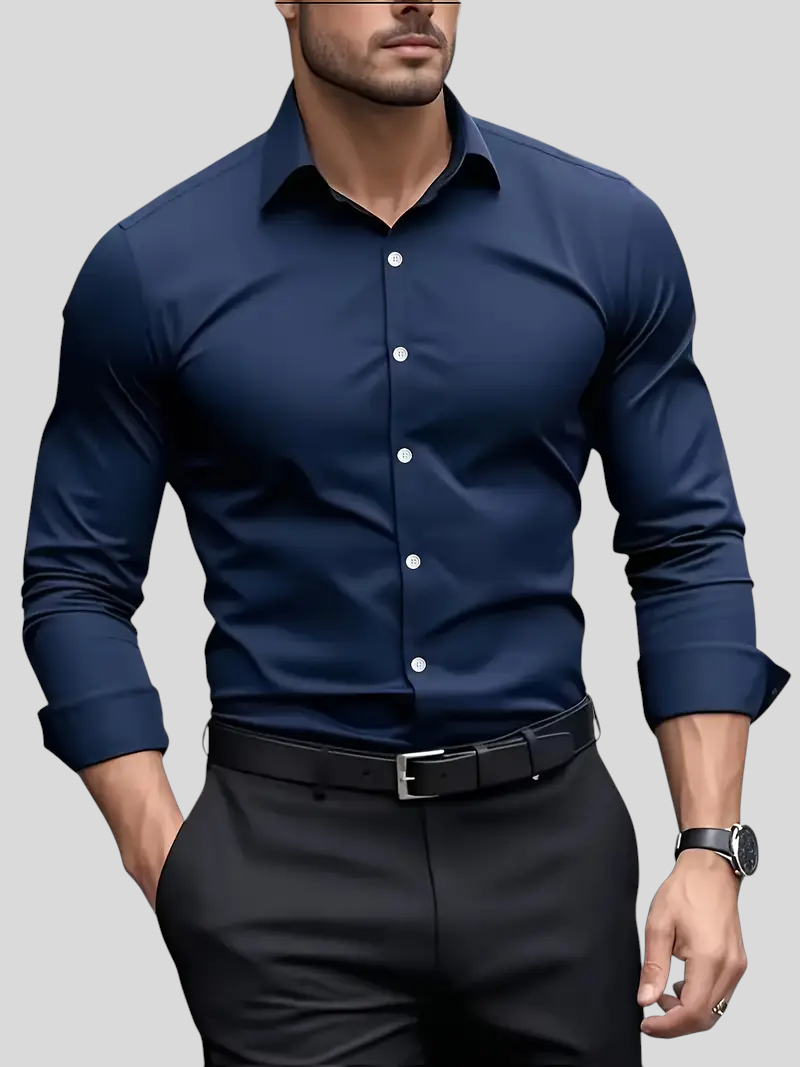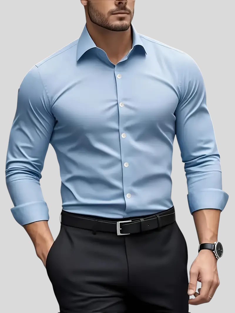 Višenamjenski komad koji spaja sofisticiranost i udobnost. Ova košulja dizajnirana je da naglasi mušku siluetu, pružajući savršeno pristajanje i dozu elegancije u svakoj prilici – bilo na poslu, formalnom događaju ili posebnom susretu. Prozračna tkanina osigurava svježinu tijekom cijelog dana, dok moderan kroj odiše samopouzdanjem i stilom.